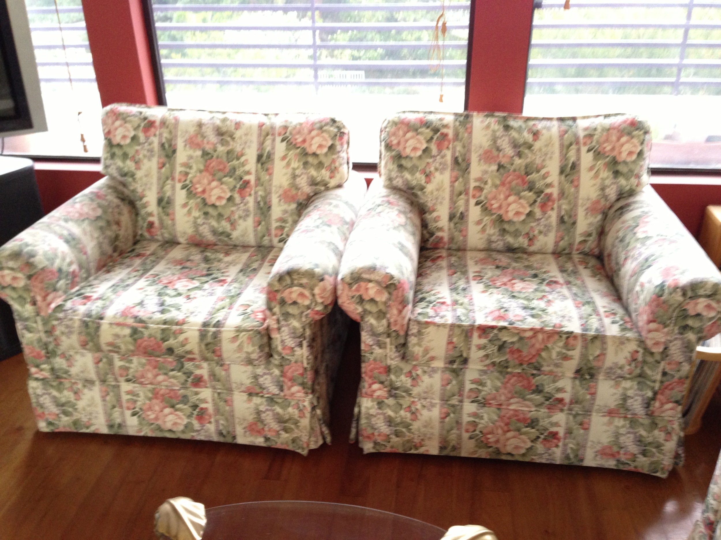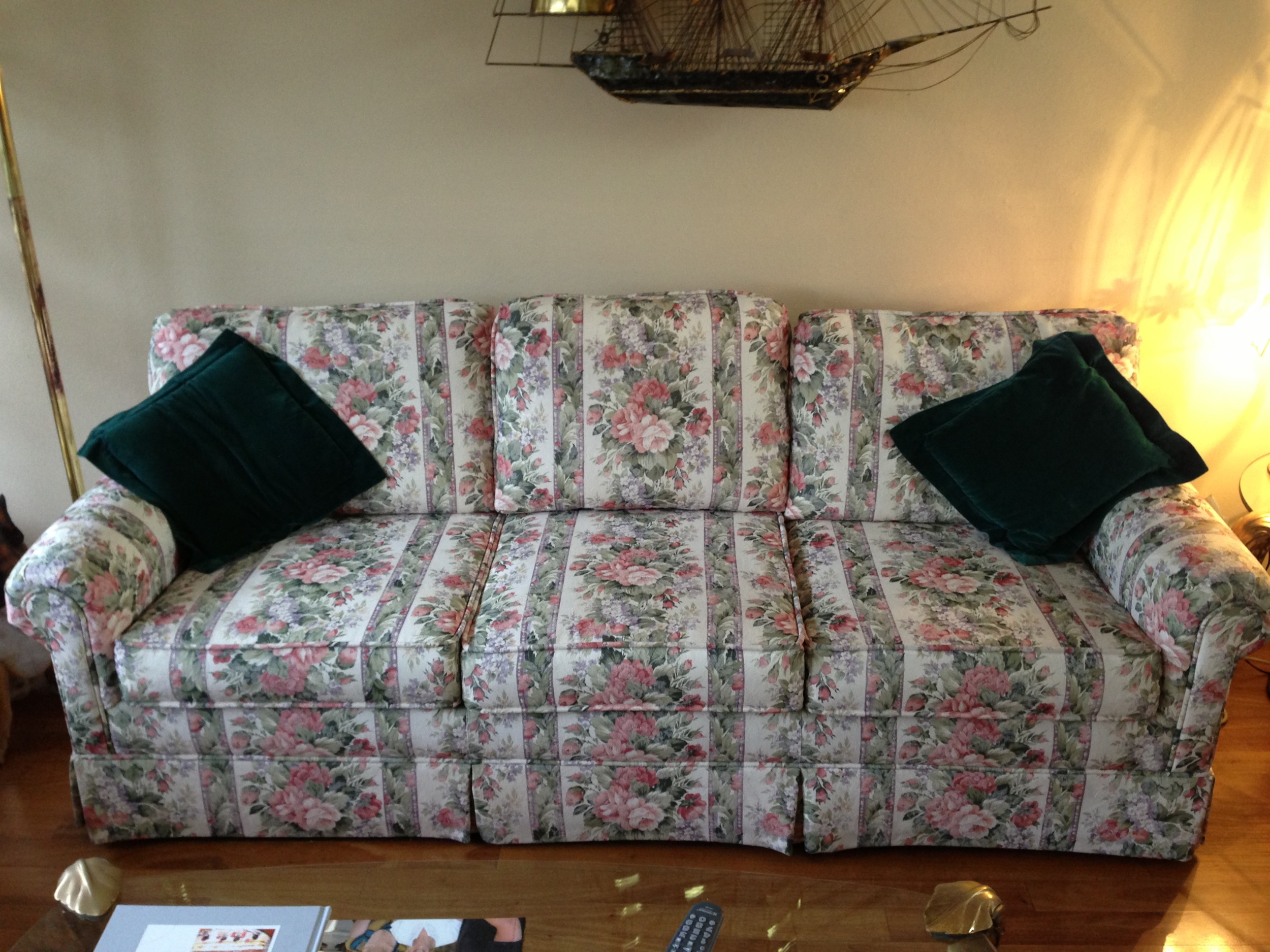 With some brown furniture covers, the (very 80s) floral print sofa and loveseats survived in the newly remodeled condo another 12 years until they were donated in September 2025 to make way for a new sofa: