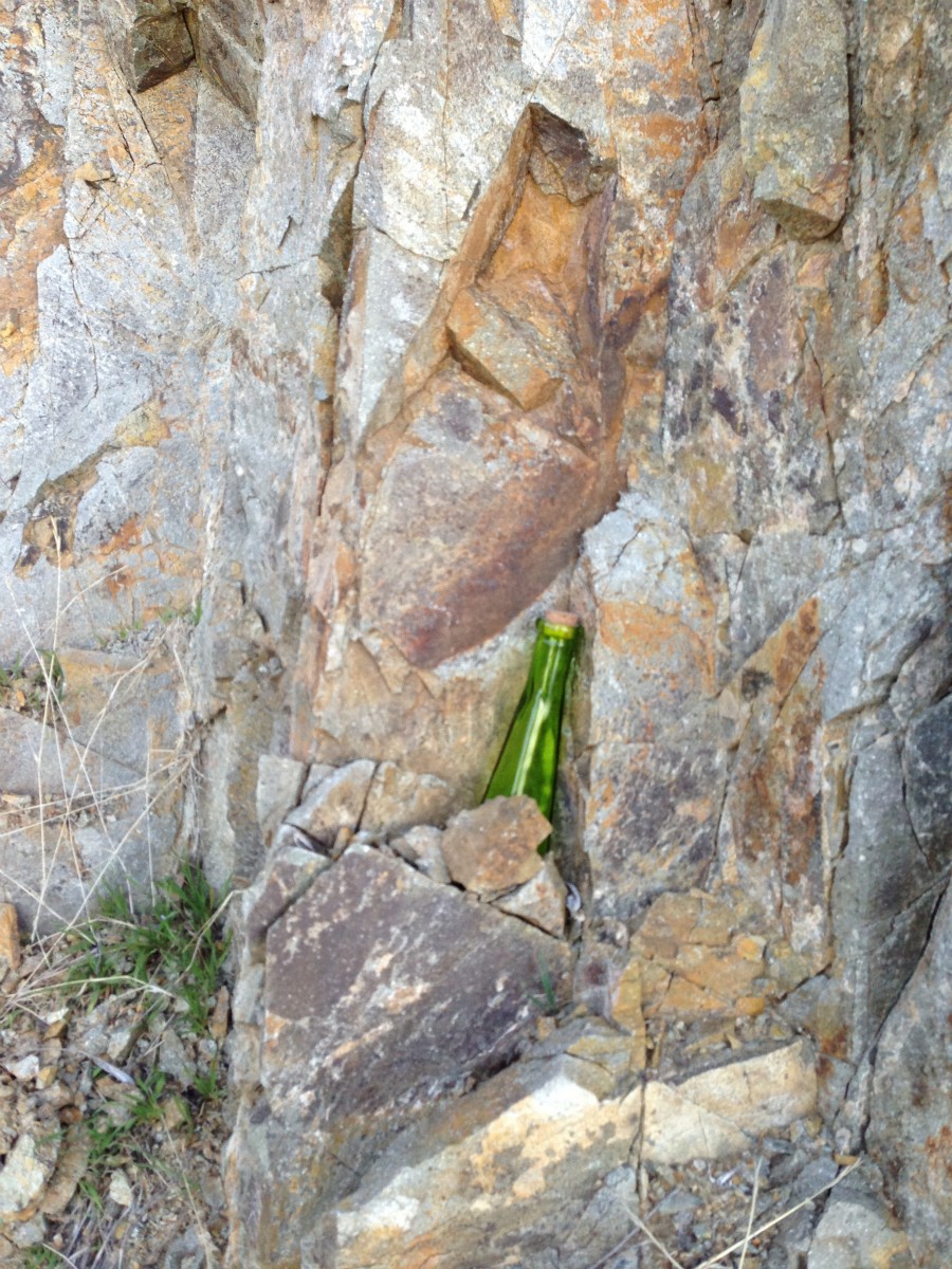 Steven decided to leave his bottle behind, wedged into the face of the rocky cliff that marked the edge of the beach.