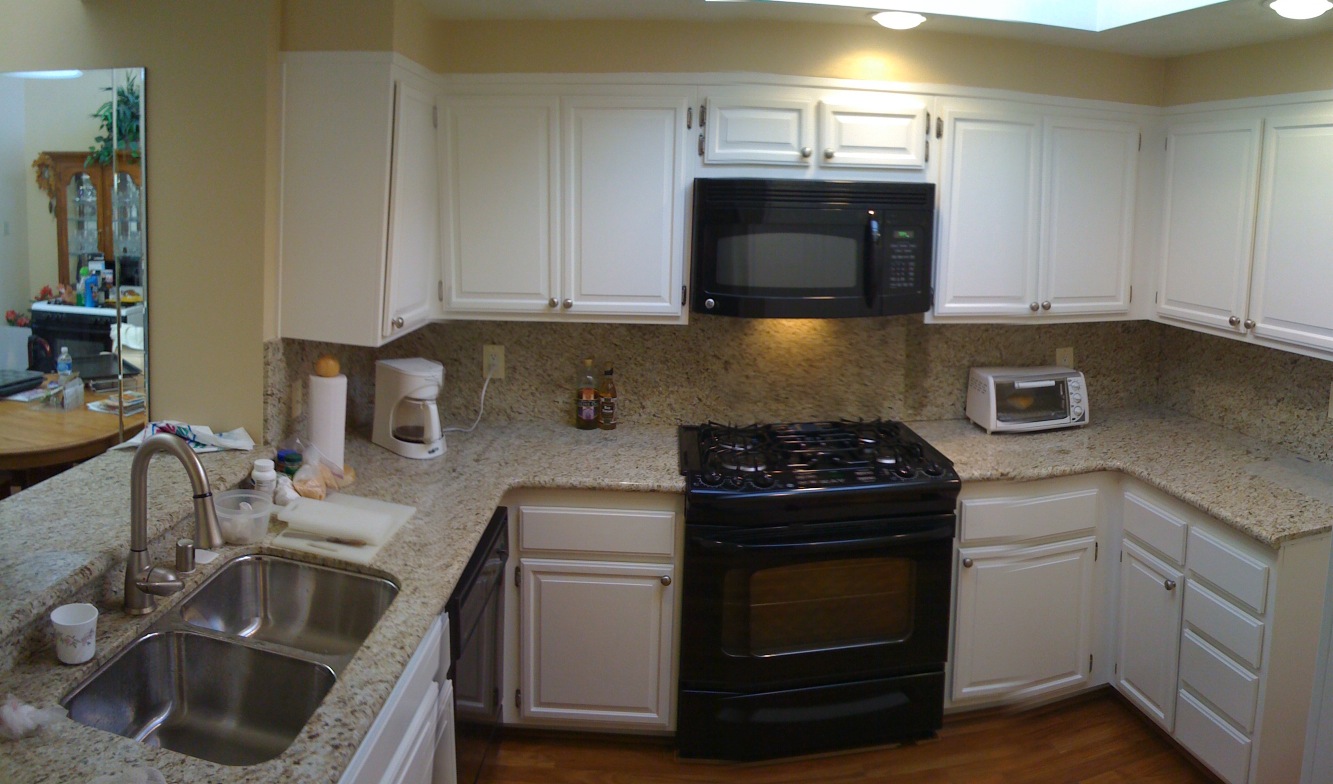 After living with a ktichen that was stuck in the 80s for four years, Cristina decided to “treat herself” to a beautiful kitchen remodel with granite countertops and new black stove for all her wonderful cooking.