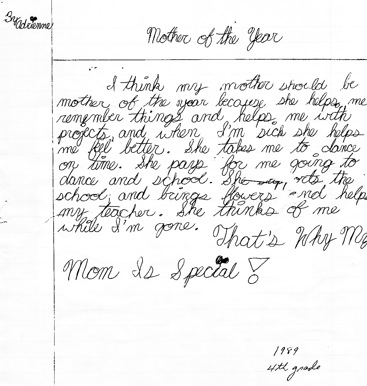 In fourth grade, Adri wrote a nomination for “Mother of the Year”: