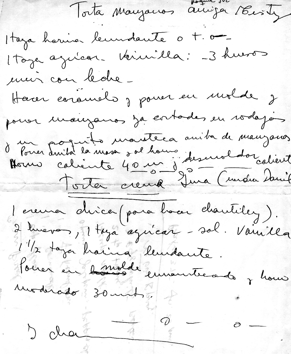 A cake recipe, written in Cristina’s handwriting, attributed to Maryanne (“friend”/”amiga”):