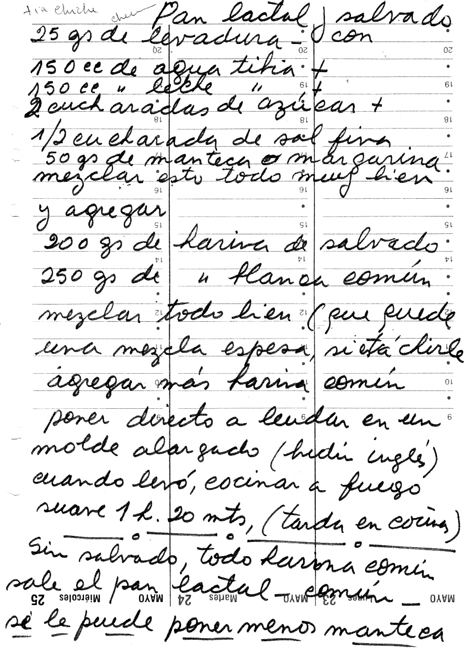 This literal “milk bread” or spongy sandwich bread has a recipe from Tía Chiche, Cristina’s aunt and sister-in-law of Livia:
